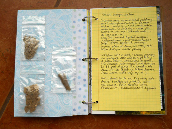 Zaś wczoraj wieczorem zakończyłam w Gromadzienniku etap wklejania suwenirów z Florydy. Teraz trzeba będzie wyciosać jakąś okładkę i wywołać conieco zdjęć, tych najważniejszych, i dorzucić na kilku kartach. Czyżby pierwszy raz w życiu miało mi się udać skompletowanie wycieczkowego albumu?